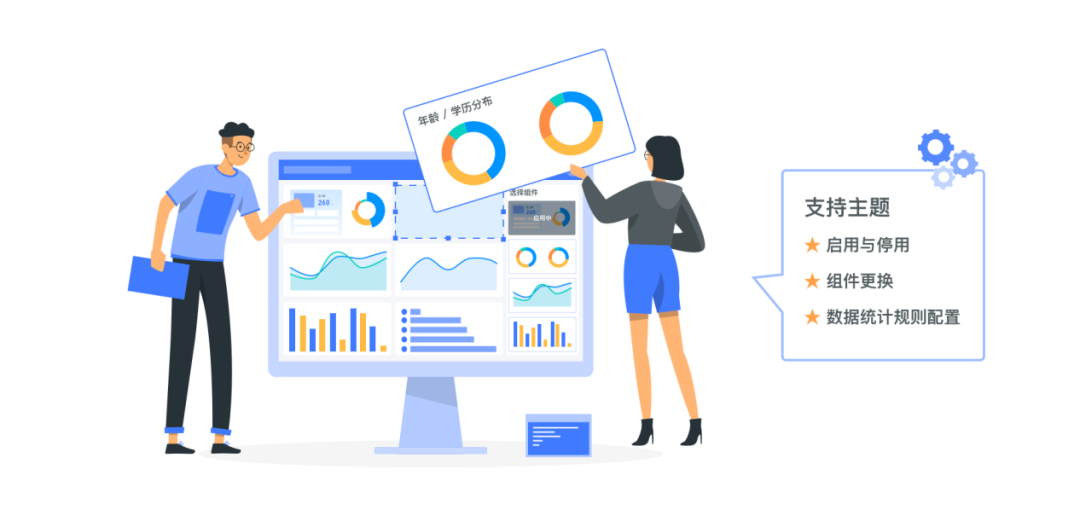 系統內置大量的分析主題,支持主題的啟動與停用、組件更換、數據統計規則配置。