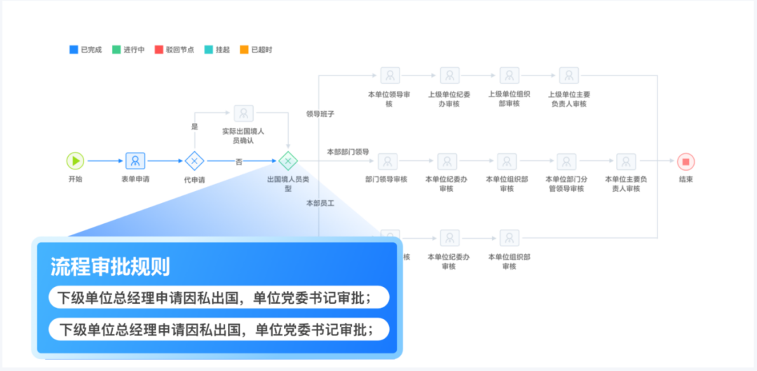 改審批流程,領導層人員因私出國(境)需要線上審批,不同職務人員審批流程不一樣。