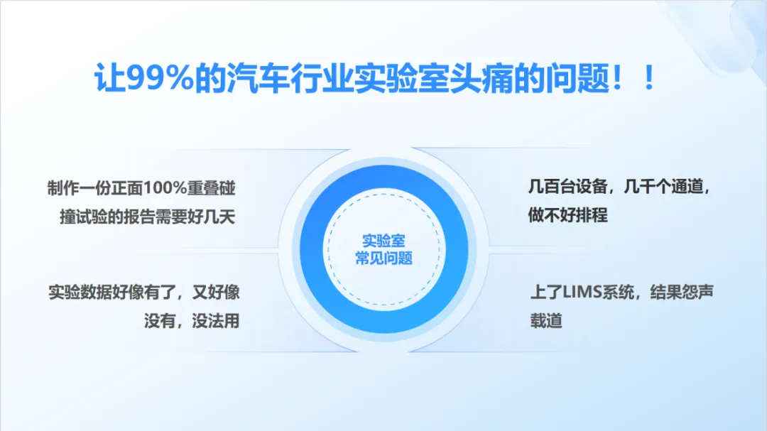 金現代智慧實驗室產品負責人王一吏在會上指出,當前車企實驗室管理普遍面臨四大挑戰:一是實驗報告編寫效率低;二是設備綜合利用率不清晰;三是實驗數據結構化能力弱;四是傳統LIMS應用更新能力不足。針對這些問題,金現代提出了一系列創新解決方案,旨在幫助車企提升實驗室管理效率,強化質量控制能力。